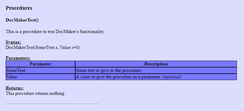 1Procedure DocMakerTest(SomeText.s, Value.i=0)